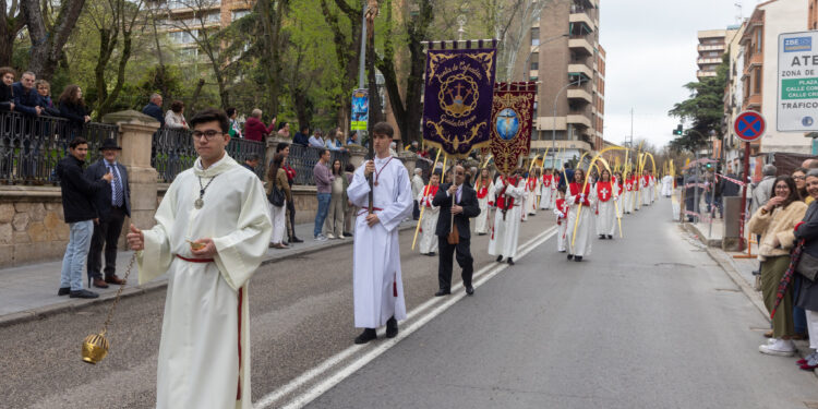 Presidida por el obispo de la Diócesis de Sigüenza-Guadalajara, Monseñor Julián Ruiz Martorell, y con la presencia institucional de la alcaldesa Ana Guarinos junto a otros miembros de la Corporación municipal, la mañana comenzó en la Plaza de Santo Domingo, donde tuvo lugar la tradicional bendición de los ramos de olivo y palmas. Un gesto simbólico que evoca la entrada triunfal de Jesús en Jerusalén y que da el pistoletazo de salida a los actos litúrgicos de la Semana Santa 2025 en Guadalajara.