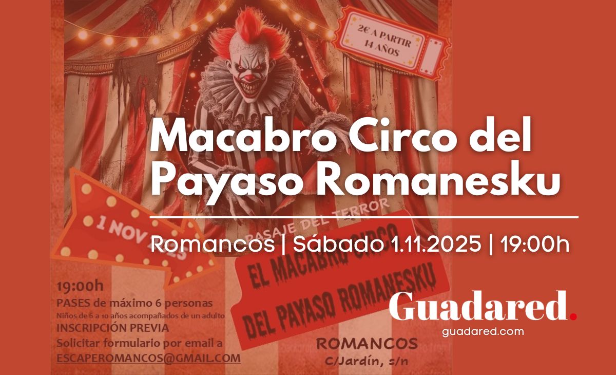 Romancos (Guadalajara) se prepara para vivir una noche de miedo y diversión el próximo sábado 1 de noviembre con la V edición del Pasaje del Terror de Romancos. Este año, el evento contará con la participación especial del “Macabro Circo del Payaso Romanesku”, un espectáculo que promete transformar las risas en gritos y los aplausos en escalofríos.