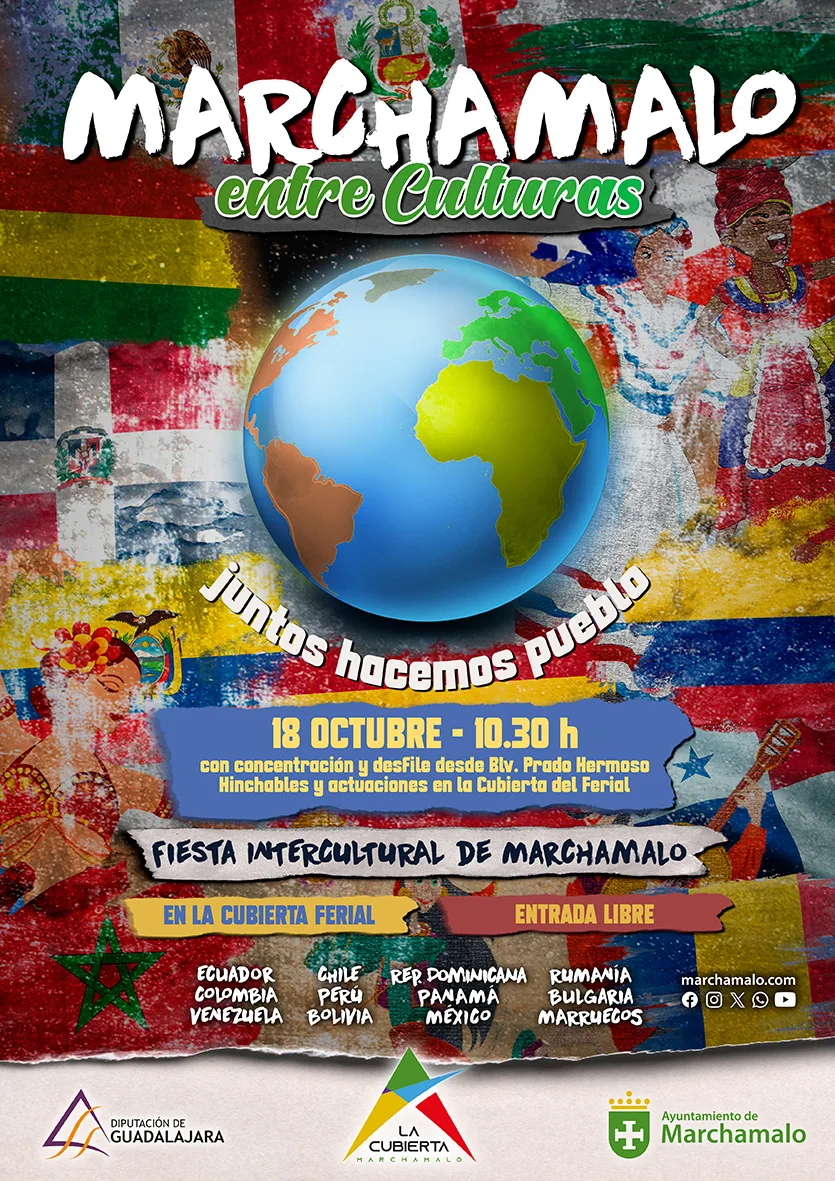 Organizada por el Ayuntamiento de Marchamalo, la iniciativa busca promover la convivencia y el respeto entre culturas, visibilizando la riqueza que aportan las diferentes comunidades que residen en el municipio y en la provincia. Esta cuarta edición contará con la participación de doce nacionalidades, entre ellas Perú, Ecuador, Colombia, México, Venezuela, Bolivia, Panamá, Chile, Rumanía, Bulgaria, Marruecos y la República Dominicana, país que será protagonista invitado este año.