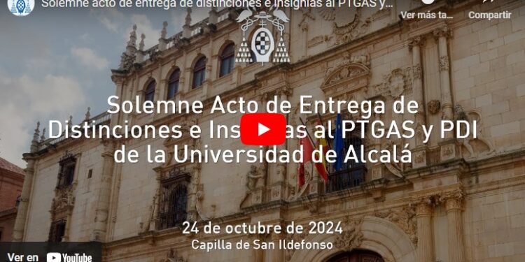 Este evento, que tendrá lugar en el emblemático Paraninfo de la Universidad de Alcalá de Henares, también rendirá homenaje a los miembros del Personal Técnico, de Gestión, Administración y Servicios (PTGAS) y del Personal Docente e Investigador (PDI) que se jubilaron el curso pasado, así como a aquellos que han cumplido 25 años de servicio, quienes recibirán la insignia de oro y de plata, respectivamente.