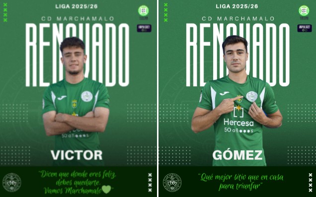 Esta semana, el club ha confirmado la continuidad de dos jugadores fundamentales en el centro del campo: Miguel Gómez y Víctor Martín también renuevan su compromiso con el CD Marchamalo, sumándose así a las recientes renovaciones de Carlos Ballesteros y Alberto González.