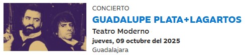 • 9 de octubre: Guadalupe Plata + Lagartos sin sombrero