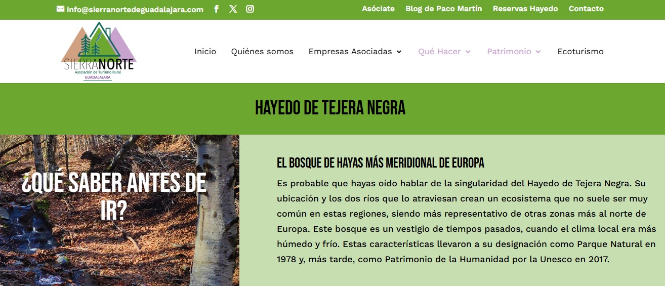 Nuevo portal web de la Asociación de Turismo Rural Sierra Norte de Guadalajara impulsa el turismo responsable