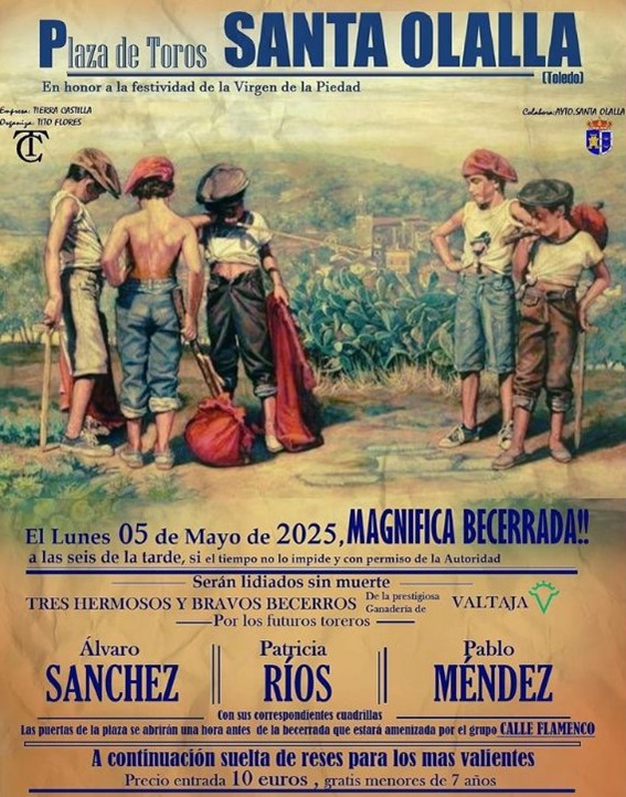 La localidad toledana de Santa Olalla, de la mano de la empresa Tierra Castilla, volverá a abrir sus puertas a la cantera taurina el próximo domingo 5 de mayo, a las 18:00 horas, con la celebración de una magnífica becerrada.
