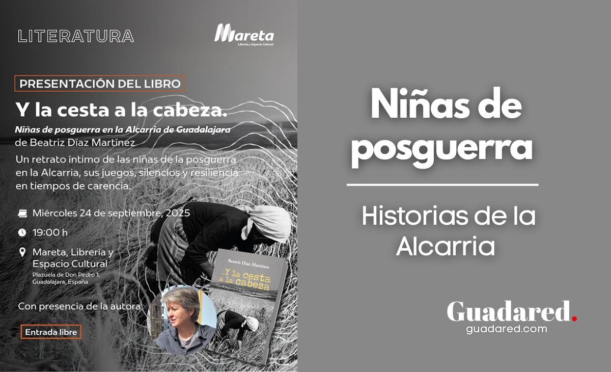 La librería y espacio cultural Mareta acogerá este miércoles, 24 de septiembre, a las 19:00 horas, la presentación del libro “Y la cesta a la cabeza. Niñas de posguerra en la Alcarria de Guadalajara”, escrito por Beatriz Díaz Martínez y publicado por Ddt Liburuak. La entrada será libre y contará con la presencia de la autora, así como de algunas de las mujeres cuyas historias han inspirado la obra.