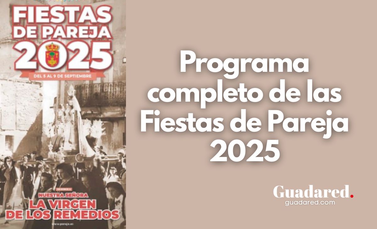 🎉 Pareja se viste de fiesta del 5 al 9 de septiembre para celebrar sus Fiestas Patronales en honor a la Virgen de los Remedios. 👉 Desfiles de carrozas, conciertos, encierros, peñas y gastronomía. 📌 Consulta aquí el programa completo con todos los actos. 👉 #GuadaRed 🔥 ¿Con quién vas a vivir las Fiestas de Pareja 2025?