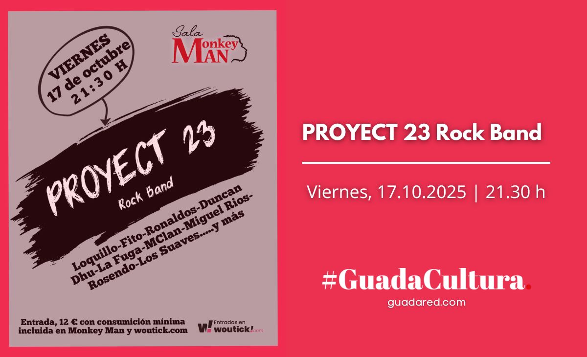 Guadalajara se prepara para una noche de energía y nostalgia: PROYECT 23 Rock Band en la Sala Monkey Man. GuadaRed te anima a disfrutar de cena y directo para revivir los clásicos del rock español. No te quedes sin tu entrada.