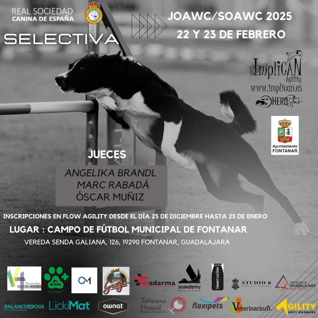 Organizadas por el Club Agility ImpliCAN de Yunquera de Henares, estas pruebas selectivas para las categorías Senior y Junior reunirán a los mejores competidores en el campo de fútbol municipal de Fontanar, y lo mejor de todo: ¡la entrada es gratuita!