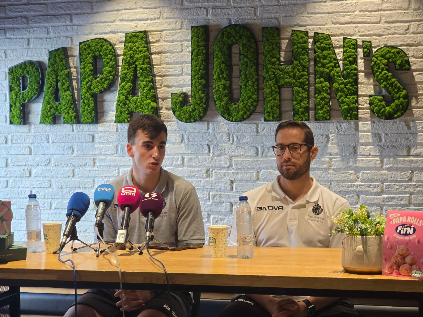 La primera previa de la temporada tuvo lugar en el local Papa John’s de la calle Rufino Blanco, establecimiento que ha renovado su patrocinio con el club alcarreño. Allí se dieron cita el entrenador, Juan Carlos Requena, y una de las caras nuevas del vestuario, el central catalán Joan Blanco, que afrontaba su primera rueda de prensa como jugador morado.