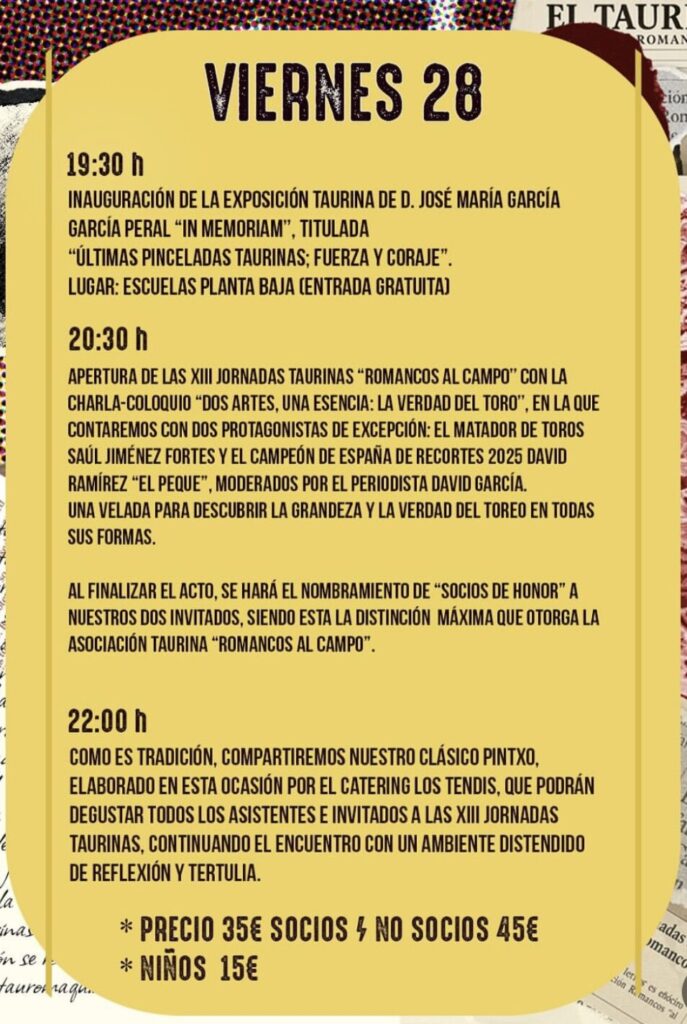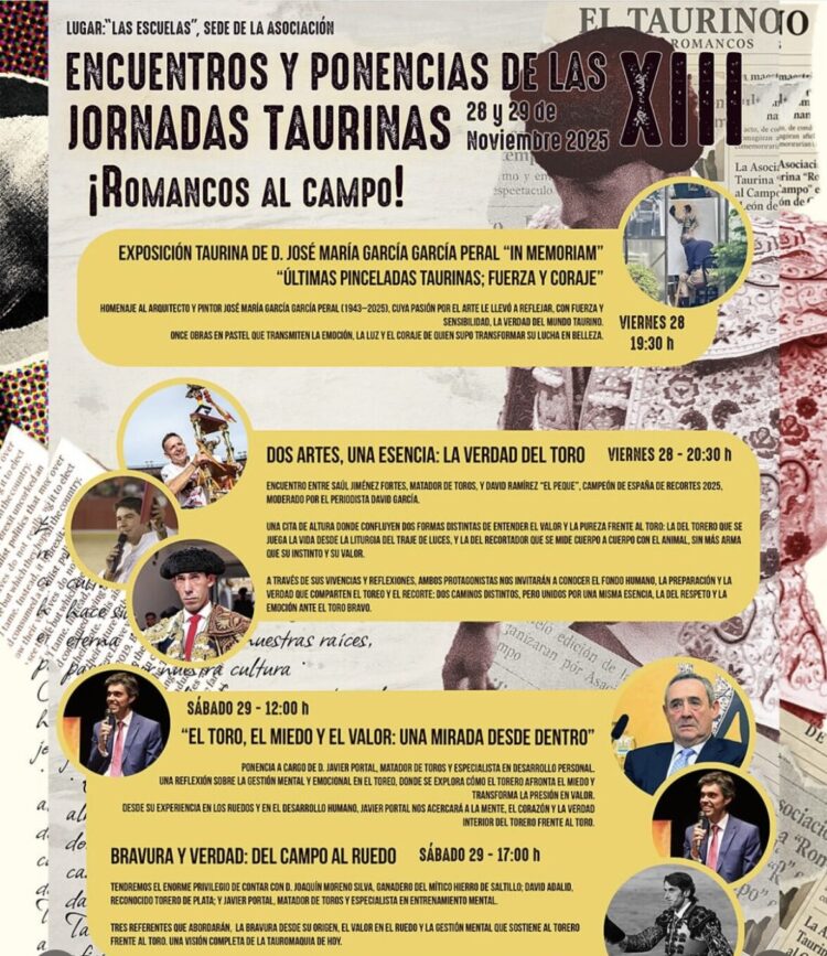 Con este programa, la Asociación Taurina “Romancos al Campo” reafirma su compromiso con la difusión de la cultura taurina y la defensa de sus valores, ofreciendo un fin de semana de reflexión, arte y pasión por el toro