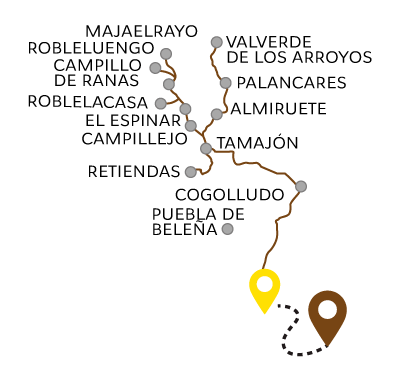 Si eres amante de la naturaleza, la ruta te ofrece un sinfín de vistas espectaculares, como las Chorreras de Despeñalagua en Valverde de los Arroyos, que son un espectáculo visual con sus aguas cayendo desde más de 80 metros de altura. Y si te gustan los retos, el Pico Ocejón (a más de 2.000 metros de altitud) es el lugar ideal para disfrutar de unas vistas panorámicas que parecen no tener fin. Ya sea que decidas recorrer los campos que bordean los ríos o adentrarte en los frondosos bosques de roble, cada paso es una invitación a la aventura.