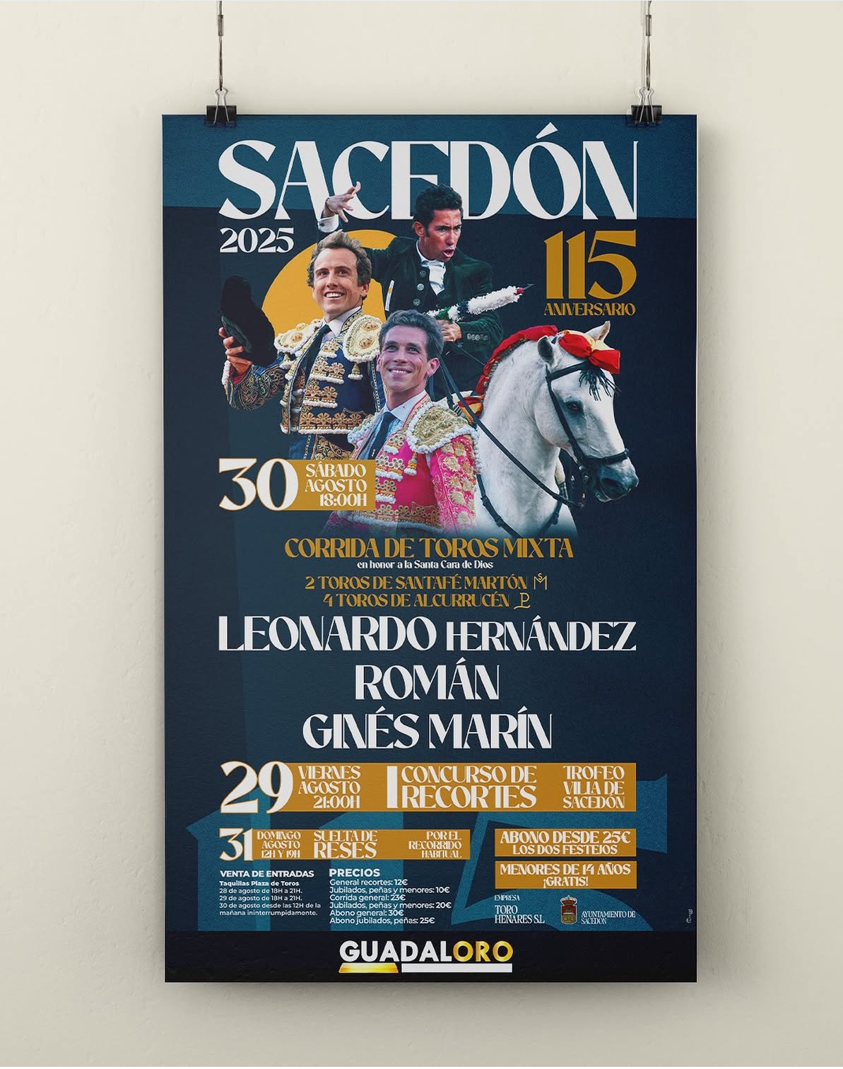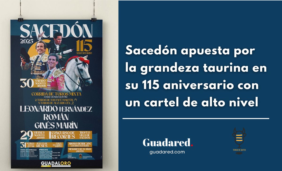 Sacedón vuelve a poner a la provincia de Guadalajara en el mapa taurino con un cartel que conjuga arte, juventud y poderío, Es un cartel que dignifica la efeméride y responde a la afición que año tras año llena esta plaza con ilusión y respeto.