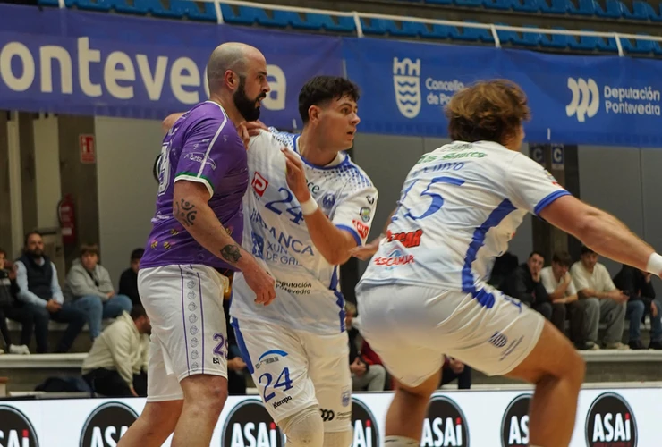 El encuentro comenzó de manera positiva para el conjunto morado, con una defensa compacta y agresiva que desactivaba las principales armas ofensivas de los locales. En los primeros minutos, el equipo de José Requena consiguió un parcial de 0-3, con un David Vladić que estuvo inspirado bajo palos, deteniendo el primer penalti del partido. Aunque los gallegos lograron igualar el marcador a 3-3 en el minuto 10:20, los visitantes pronto retomaron el control del encuentro.