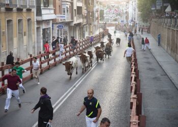El primer encierro de las Ferias y Fiestas de Guadalajara 2024, con seis toros de la Ganadería del Pilar que ...