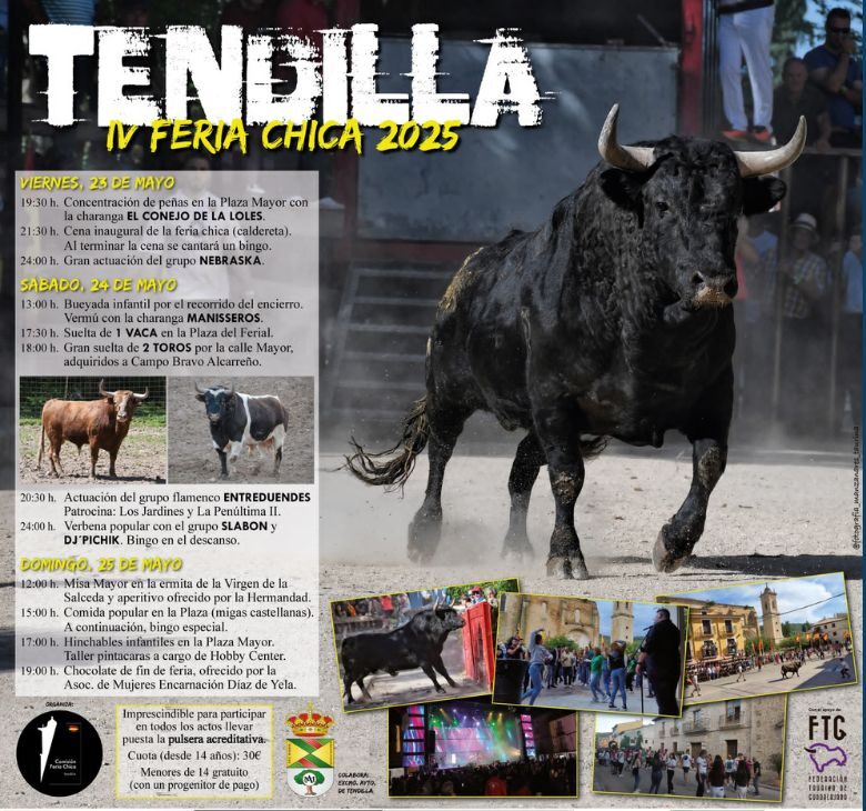 El próximo fin de semana de 23, 24 y 25 de mayo, el municipio alcarreño de Tendilla se vestirá de fiesta para celebrar por todo lo alto su IV Feria Chica, una jornada cargada de sabor popular, emoción taurina y ambiente festivo que promete congregar a vecinos y visitantes en torno a sus tradiciones más arraigadas.