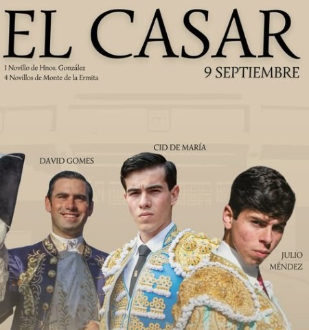 El Casar (Guadalajara). Segunda novillada de la Feria en honor a la Virgen de la Antigua. Novillos de Hermanos González (1º) y Monte La Ermita (resto), bien presentados y de buen juego en general. Tres cuartos largos de entrada.