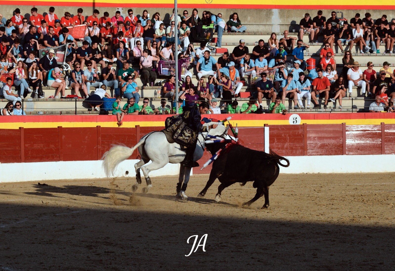 Abrió la tarde el rejoneador David Gomes, que se las vio con un novillo con movilidad y transmisión desde los primeros compases. Lo paró con solvencia, encelándolo con rapidez en la grupa del caballo, y colocó dos rejones de castigo en todo lo alto, bien ejecutados y certeros. La labor con banderillas fue de nivel, adornándose con quiebros ajustados que conectaron con fuerza en los tendidos. En el tramo final, Gomes pidió permiso para las cortas, que dejó colocadas con emoción y pureza. Sin embargo, todo el esfuerzo quedó en nada tras fallar reiteradamente con el rejón de muerte, escuchando los tres avisos entre la bronca del público.