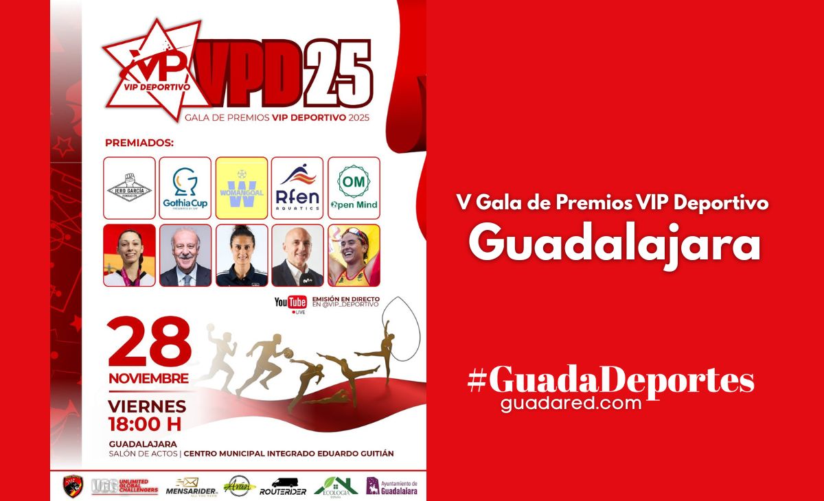 La V Edición de la Gala de Premios VIP Deportivo se celebrará el viernes 28 de noviembre a las 18:00h en el Salón de Actos del Centro Municipal Integrado de Guadalajara. Las entradas son gratuitas y ya están disponibles a través de este enlace.