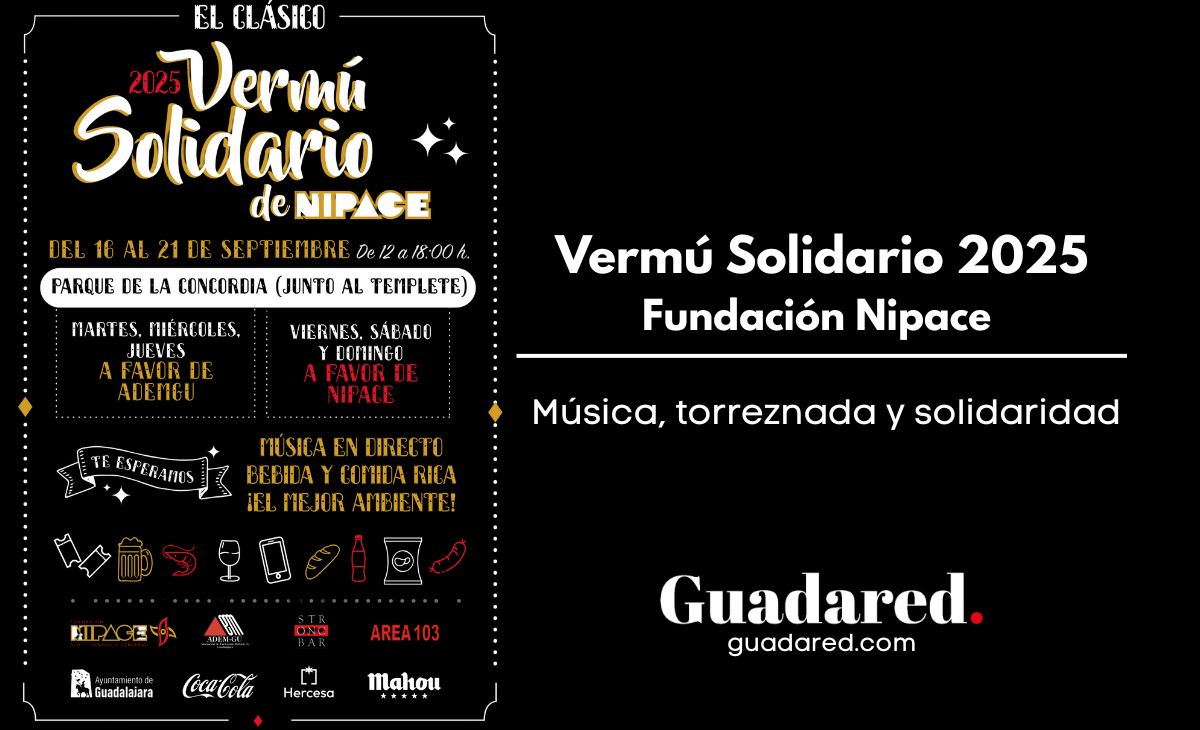 Descubre el Vermú Solidario de Fundación Nipace en Guadalajara 2025: música en directo, torreznada solidaria y actividades para toda la familia. Disfruta de las Ferias mientras colaboras con ADEMGU y Nipace.