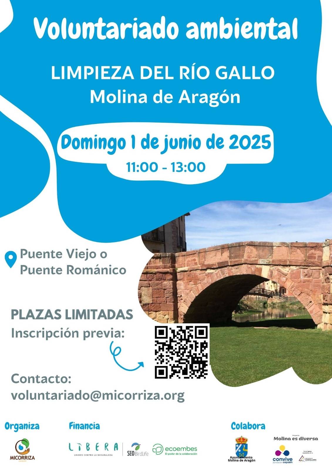 🧹 ¡Limpieza del río Gallo en #MolinaDeAragón! 📅 1 de junio, 11:00 h 📍 Puente Viejo ♻️ Súmate al voluntariado ambiental de @AsocMicorriza 📝 Inscripción: #GuadaRed #Basuraleza #ProyectoLIBERA