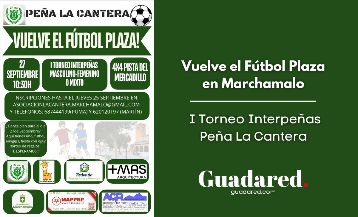 ⚽ ¡Vuelve el Fútbol Plaza a Marchamalo! Disfruta del I Torneo Interpeñas de la Peña La Cantera con música, sorteos y fiesta 🎉 ¡Inscríbete ya! #GuadaRed