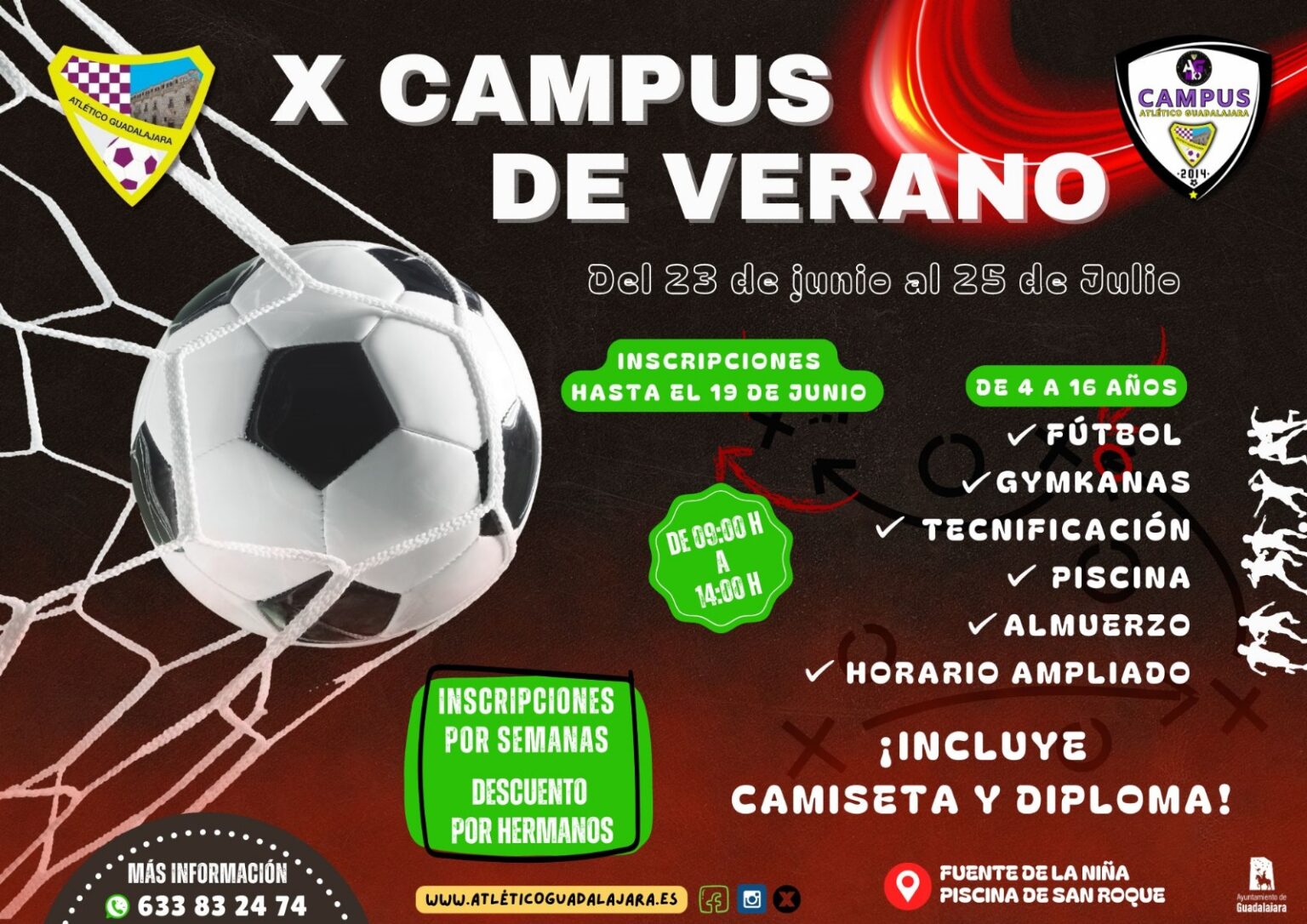 Ya está aquí una de las citas más esperadas por las familias deportivas de la ciudad. El Club Atlético Guadalajara celebra la décima edición de su Campus de Verano, que tendrá lugar del 23 de junio al 25 de julio en el Complejo Deportivo Fuente de la Niña y la Piscina Municipal de San Roque.